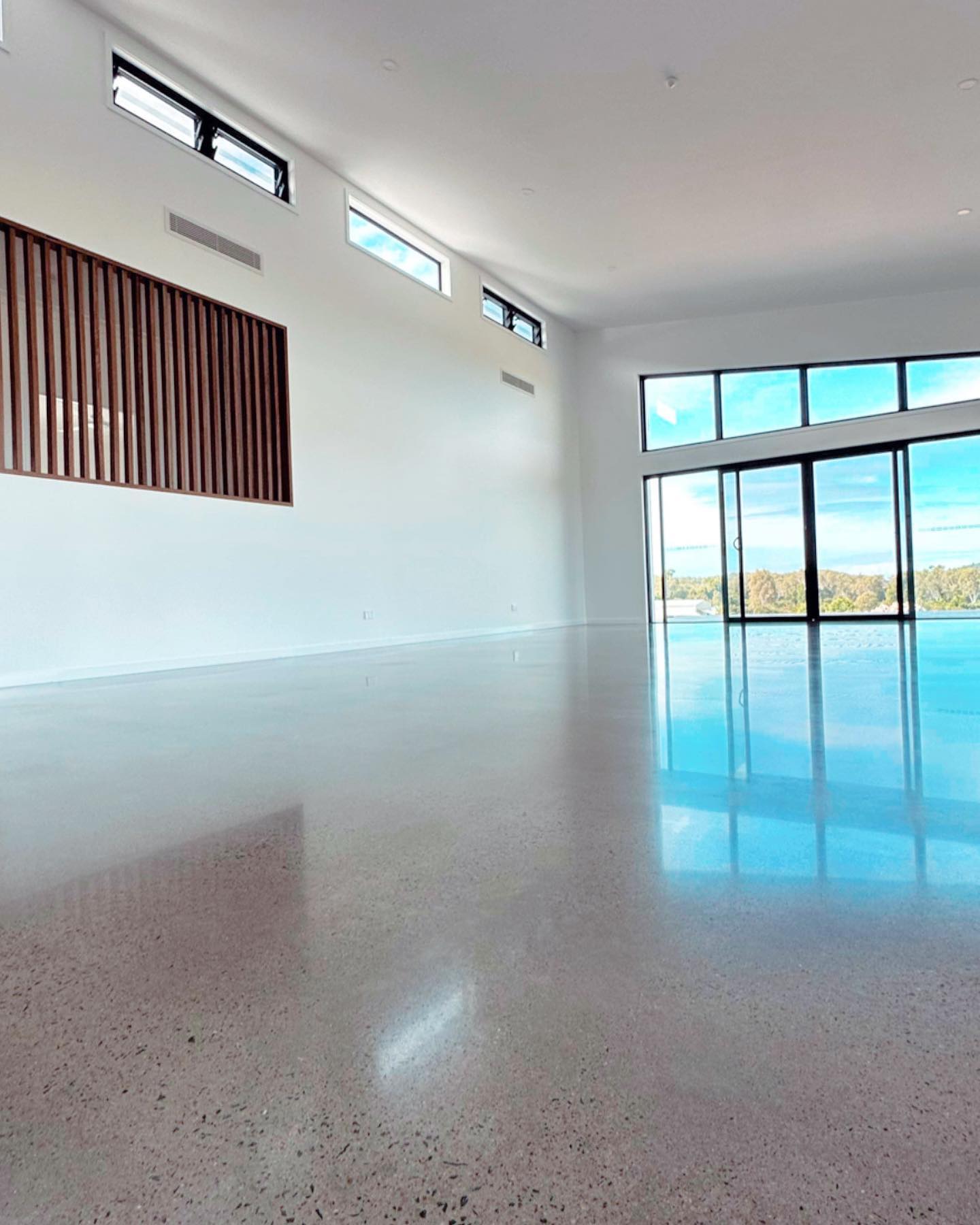 This floor transformation brought sleek, modern design and exceptional durability to our client's home. We ground, polished, and sealed the concrete to a stunning high-gloss finish, creating a stylish yet practical surface perfect for everyday living. With attention to every detail, we delivered a floor that balances aesthetics and functionality.